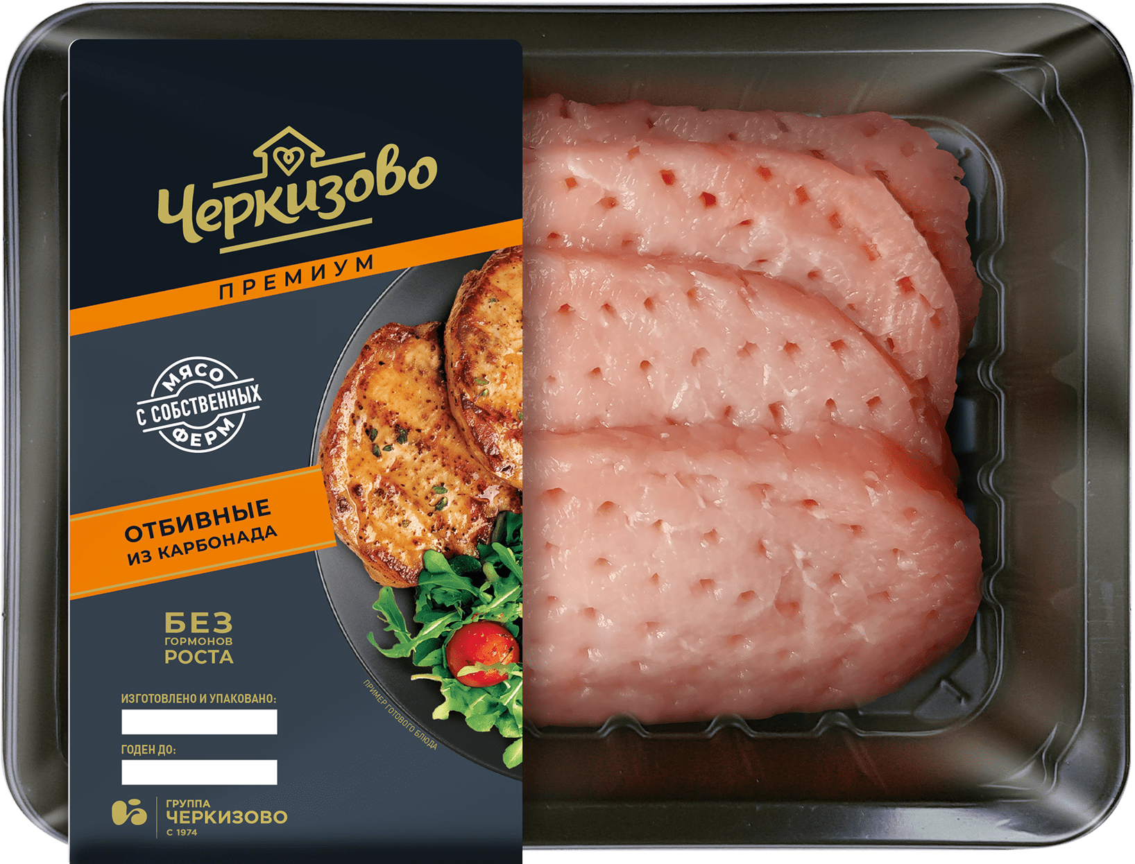 Третий продукт — свиные отбивные из карбонада — не содержит готового маринада и открывает простор для фантазии покупателей. Это уникальный продукт на рынке полуфабрикатов из свинины, так как обычно отбивные из карбонада продаются только в кулинарии. В упаковку входит несколько аппетитных стейков, предварительная подготовка которых на производстве делает мясо мягким и нежным на вкус.
