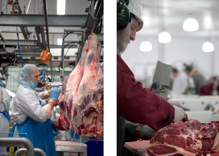 - Качеством обвалки и обрезки (мясо, оставленное на кости; мясо, оставленное на срезанном жире; падение мяса во время обвалки)
